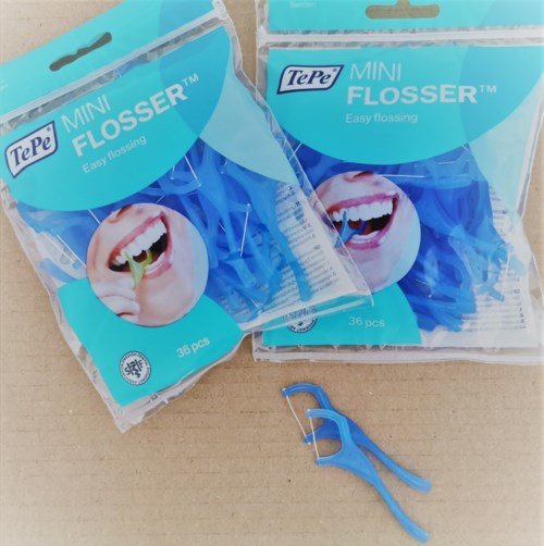 TePe MiniFlosser™ förenklar användningen av tandtråd. Tråden är slitstark, tunn och tvinnad, och glider lätt igenom kontaktpunkterna. Bygelns ovansida är formad som en bitplatta så att man med hjälp av motsatt käke försiktigt kan hjälpa till att föra in tråden mellan tänderna. Bygeln har flera greppmöjligheter.
