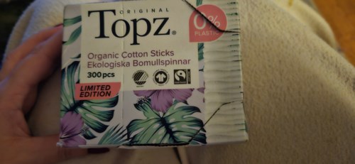 Topz Premium Cotton Sticks är bomullspinnar av hög kvalitet som kan användas för rengöring, korrigering och borttagning av smink. Själva pinnen är tillverkad av FSC-certifierat papper och ändarna är tillverkade av mjuk och ekologisk GOTS-certifierad bomull. Den tåliga pappersförpackningen är tillverkad av FSC-certifierat papper. Både pinnarna och förpackningen är biologiskt nedbrytbara. Certifierade med Certifierad med GOTS (Global Organisation Textile Standard) och FSC – Forest Stewardship Council.