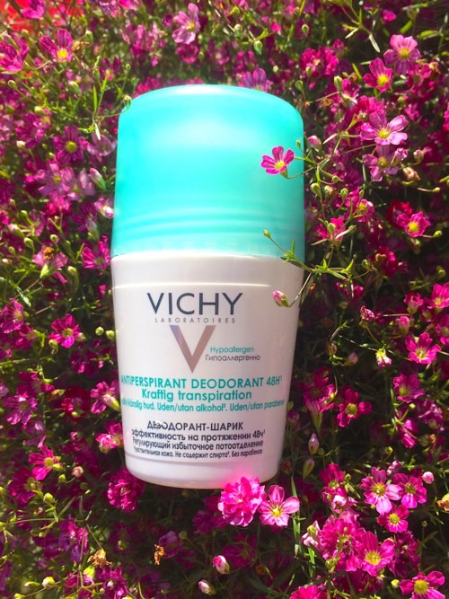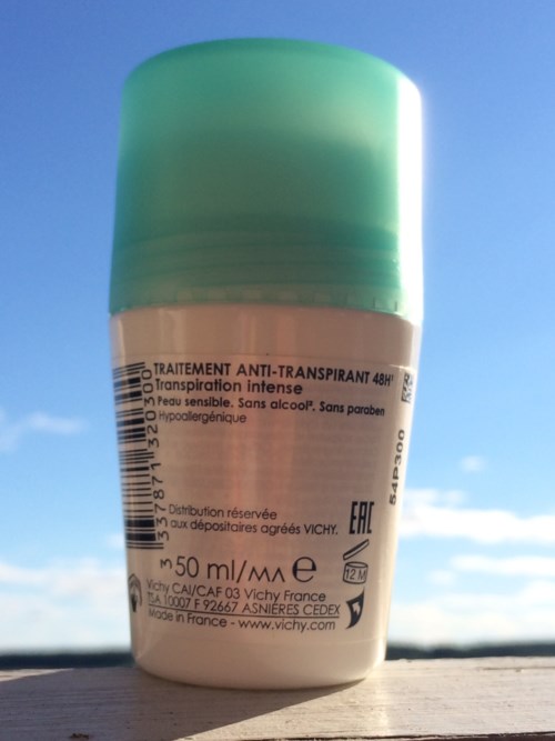 När tiden kom för att köpa ny deodorant bestämde jag mig att satsa på kvalité. Valet föll på den MINTGRÖNA Vichy-deon pga godast doft. Inte pga den härliga texten "Kraftig transpiration". Orden ”Kraftig Transpiration” måhända vara sanna, men jag vill ju HELST inte bli påmind av dem när jag väl köper min deo. På engelska står det ”Transparation Intense” vilket bara låter lite härligt, som att den är ”intensivt skyddande” på nåt sätt. Inte för den som SVETTAS EXTREMT MYCKET UR HÅLAN! Bah! Nåväl. Vichy Antiperspirant Deodorant 48h Roll-On – Kraftig transpiration innehåller finfördelat aluminiumsalt, som har en effektiv och svettkontrollerande effekt. Nu ska vi återigen minnas att vi INTE ska vara rädda för aluminium pga de partiklarna är ALLDELES för stora för att ta sig in i kroppen via huden. Deon innehåller också, som alla produkter från Vichy, det unika källvatten som verkar lugnande och stärkande på huden. Alla Vichys produkter är dermatologiskt testade. Detta innebär att produkterna är noggrant testade under kontroll av dermatologer (hudläkare). Hittills så ÄLSKAR jag denna deo. Den var skitdyr jämfört med en Rexona, men väl värt det då jag inte stinker svett efter en kvart. Dessutom känns hålorna mjuka och sköna.