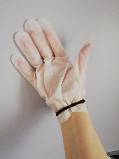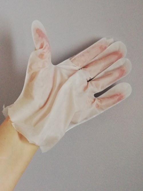 Placera en handske på varje hand och låt vara i cirka 20-30 minuter