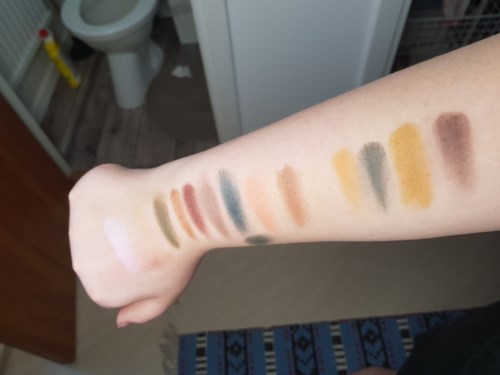 På pappret älskar jag den här paletten - färgerna är en perfekt kombo av precis det jag söker i en palett. Jordigt brunt och grönt, med inslag av lite gult och skimmer 🙌 Så jag hade sett fram emot denna, och hoppades på att de recensioner som talade emot den inte stämde 😅 Började med att swatcha på armen. Märkte direkt hur extremt dåligt pigmenterad den var, fick lägga flera lager för att det ens skulle synas på många av färgerna. Som någon annan oxå nämnde, så var den sanslöst ojämn - på vissa av de mörka färgerna blev det jättemörkt (men inte alla) och de ljusare gav knappt någon färg alls. På swatchen har jag alltså lagt flera lager, och ändå är vissa av färgerna mycket bleka. Den smular mycket, känns VÄLDIGT torr. Den färg som man med möda fått på locken sitter inte nåt vidare. Den må inte ha kostat mycket, men tyvärr känns den också helt enkelt BILLIG. Trots att billigt absolut inte automatiskt är dåligt, men i detta fallet var det så. Har faktiskt inte haft lust att öppna paletten någon mer gång efter att ha testat den. 🤮💩👎 (Nu när jag skrev recensionen och kikade på swatchen ett halvår senare, så ser jag dock att jag ska ge de två gula en ny chans) #lykoreview #w7912 visningar- Kommentaren lades 2 årAka, du är för go, tusen gånger tack bästaste du 🩷