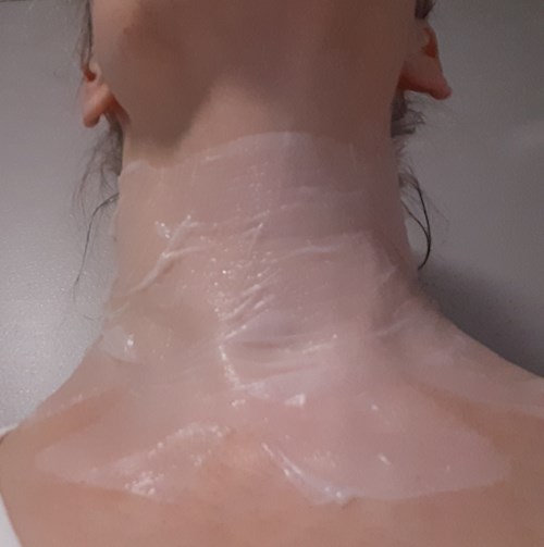 Den här mjuka och sköna halsmasken av hydrogel tyckte jag passade bra nu när 1) den gick ut och 2) mina halsrynkor som dykt upp under senaste året, börjar synas mer👎😁 I övrigt har jag torr, tunn, slät, känslig hy och med få rynkor. Masken innehåller bl a niacinamid som jobbar på hudtonen och hudstruktur, glycerin som mjukgör och binder fukt, pärlextrakt som ger lyster, sacharidisomerat som mjukgör och låser in fukt, hyaluronsyra som ger massvis med fukt, hydrolyserat marint kollagen som mjukgör och suddar ut fina linjer samt kolloidalt platinaum för att förbättra hudens fasthet och elasticitet, minska rynkor, förstärka hudbarriären och överhuvudtaget skydda huden. Så med det innehållet utlovas väldigt mycket vilket alltid gör mig aningens skeptisk🤔😄 Mil doft, helt ok för min doftöverkänsliga näsa och hjärna, lätt att sätta runt halva halsen och satt fast bra under de 35 min jag hade den på👍 Masken påminde om en halv krage eller kanske ett egyptiskt halsband och att jag alltid velat ha ett sånt😊 Effekt: aningens mjukare halshud men den vanliga krämen behövdes efteråt. Kanske en rynka minskade mini i synlighet men det hade jag kunnat uppnå med min arganolja från Loelle som är kanonbra som anti-ageprodukt👌 Förmodligen skulle man behöva ta flera masker i veckan för att få bättre resultat! Köpte halsmasken på kampanj men även då var den dyr och jag tycker att ordinarie pris 99 kr är på tok för högt i förhållande till resultatet💸💸💸 Möjligtvis kan man satsa på några st inför någon extra festlig händelse, som en Askungen-behandling, annars blir det nog effektivare att investera i serum och kräm med aktiva ingredienser! Den får 3 stjärnor ⭐⭐⭐ #tävling283 visningar- Kommentaren lades 4 årJa, vi får testa den när vi har råd, Anna Karin 🥰 Kanske blir en kampanj snart🤑 Kram och ha en fin kväll😍2 gillar