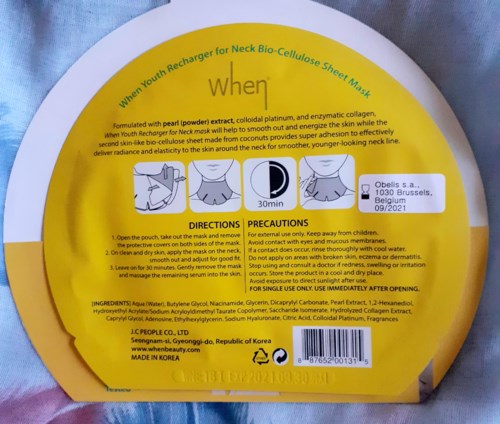 When Neck Mask innehåller pärlextrakt, collodial platinum och enzymatisk kollagen. Hjälper huden att få energi, ökar elasticitet och ger lyster.
