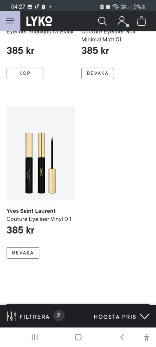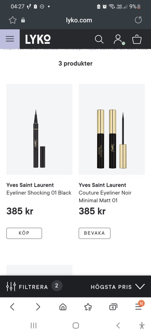 Hej! Den svarta pennan dyker inte upp på val 'svart' och 'Yves Saint Laurent' endast de på skärmbilderna gör det.1 produkt i inlägget Dyker inte upp.1123 visningar- Användarens roll: Kundtjänst på Lyko.Kommentaren lades 3 årHejsan Hanna 👋 Det har du rätt i, tack. 🙈 Jag har tagit detta vidare till berörande avdelning så att de lägger in den i kategorierna. 🙌💃 Ha en toppen dag! 🍂