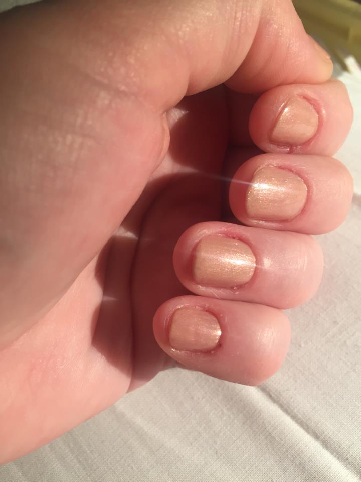 Är riktigt ostabil när jag ska måla naglarna, detta är 2 dagar efter applicering. Är ganska grovhänt av mig o bryr mig inte så mycket om naglar o så, men som sagt det sitter bra, slits inte lätt och den är lätt att applicera. Tycker att färgen är som på bilden är en aaaning mörkare, men allt handlar om ljuset du tar bilden i! Älskar denna färgen! Så som färgen är på min bild, så ser den ut IRL efter 2 strykningar, inget mer.1 produkt i inlägget Bra2420 visningar - Inlägget skapades 6 årBetyg: 5 av 5Verifierad köpare