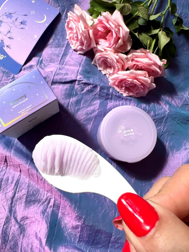 Kokeilin hwarangs Bellflower Cleansing Balmia, joka lupaa poistaa meikin, aurinkosuojan ja muut epäpuhtaudet iholta sekä tarjota ihonhoitohyötyjä ainesosilla, kuten kellokukka ja pantenoli. Balsami tulee kauniissa violetissa purkissa, jossa on lasta. Suhteellisen pehmeä koostumus, joka sulaa, kun sitä hierotaan kämmenten välissä, ja siinä on kevyt violetti sävy, joka tulee kamomillaöljystä. En tunne mitään tuoksua, joten se on hienoa. Se poistaa meikin ja sävytetyn aurinkosuojan helposti. Vesitiiviin ripsivärin tai erittäin mustan poistamiseen tuntuu, että tarvitsen enemmän balsamia kuin tavallisesti. Se huuhtoutuu helposti ja jättää ihon pehmeäksi ja täyteläiseksi. Puhdistan aina kaksinkertaisesti, joten minulla ei ole ongelmia öljy- tai balsamijäämien kanssa. Olen nauttinut puhdistusbalmin käytöstä. Se on tehokas ja helppo käyttää. Säilytän lastani purkissa, mutta tiedän, että heillä on uusi pakkaus, jossa lastan voi kiinnittää kannen sisäpuolelle, mikä on harkittua.