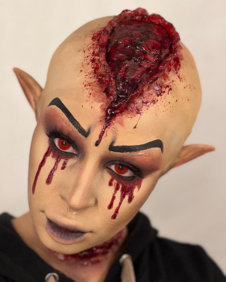 Årets Halloween-look är inspirerad av utomjording särskilt huvudet men absolut på mitt sätt👽Har fokuserat på att göra så naturliga skrämmande sår där jag målade hjärnan och jobbade mest på den🧠 Jag har lagt flera timmar jobb på denna look och hoppas att ni tycker om det🖤 Önskar lycka till till alla talangfulla deltagare🖤👽 #halloween22 #nyxprofessionalmakeup #sfx #sfxartist #sfxmakeuplook #makeupartist #halloweenlook #halloweenmakeup #nyx #tävling