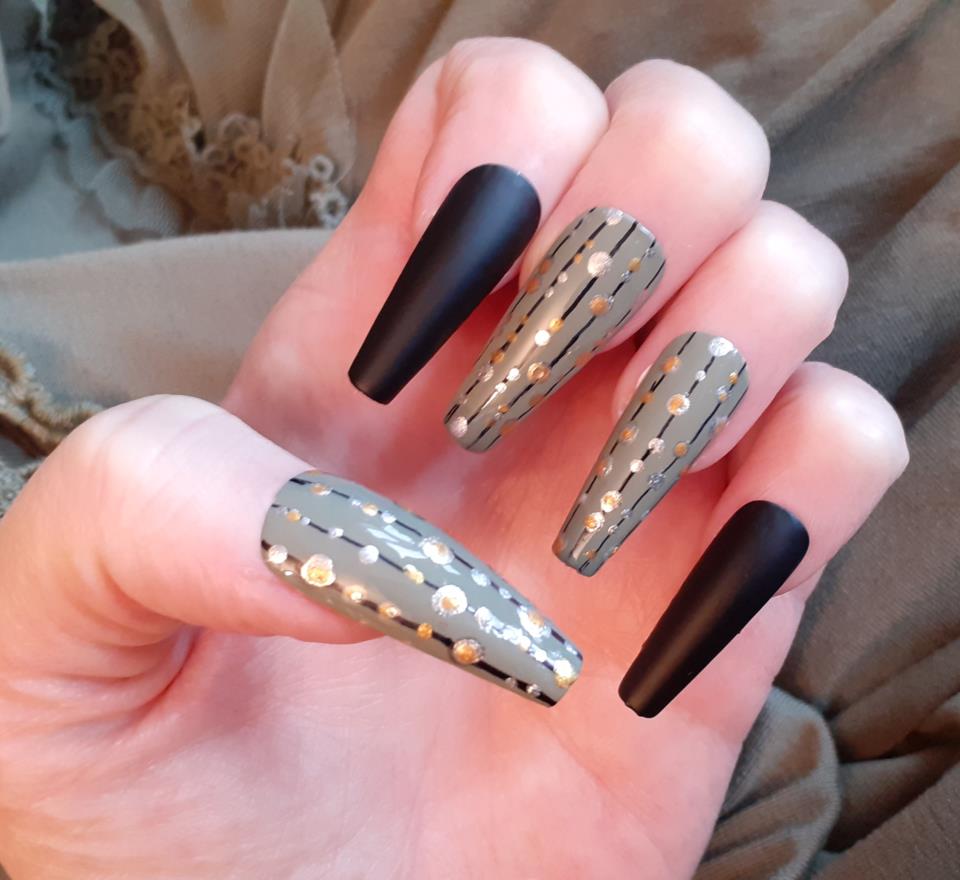 Godmorgon alla fina Lykosar! Ny vecka, nya tag o hoppas alla har det bra🥰 Tänkte visa en enkel look som är lätt att göra o inte alls tar lång tid. Det svåraste är nog att få en rak linje. Men om du är ostadig på handen så sätt en bit tejp o måla efter det 😉 Valde matt lack på svart o glansigt på övriga. Produkter jag ej kan länka till är W7 khakigrön , guld o silver är ur Opi kalendern #Evastipsotrixonaglar #opi #W7